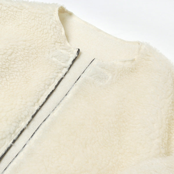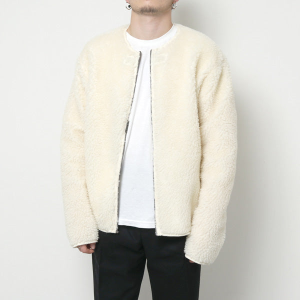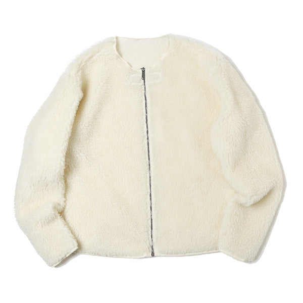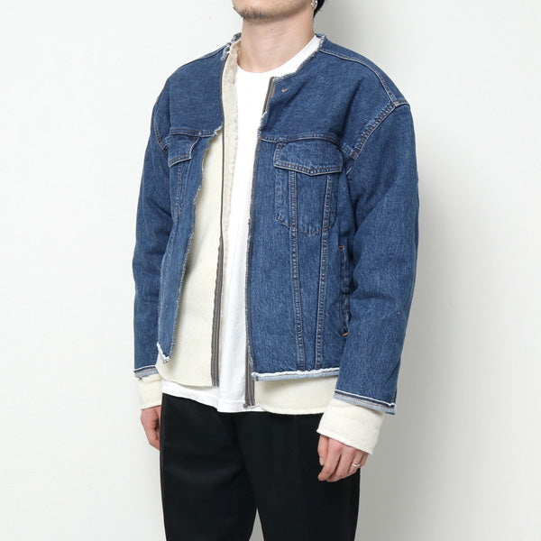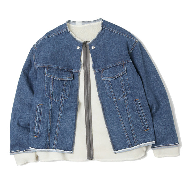 ・デニムジャケット、ボアブルゾン、レイヤードブルゾンとアレンジ自在な3WAY仕様。襟元のドットボタンで着脱が可能。裾は断ち切りにロック始末で軽やかな印象に。