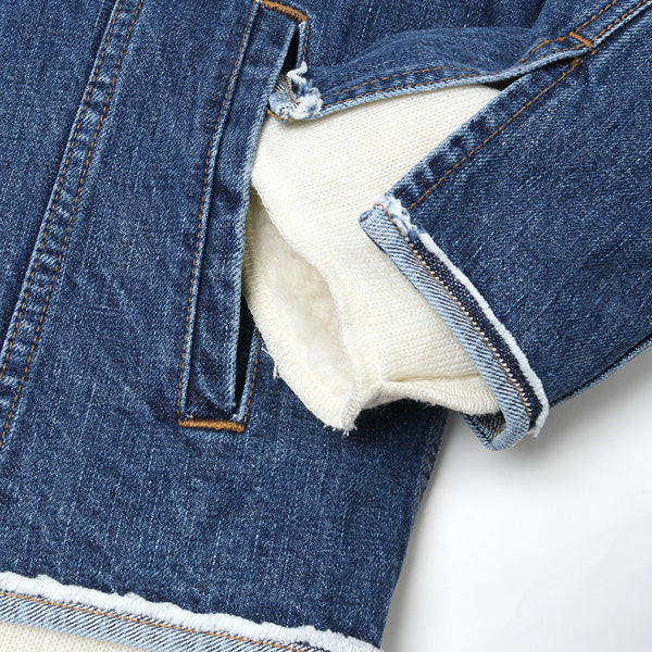 ・80’Sのボアジャンから着想を得た、3WAYのデニムブルゾン。セットアップで着用可能なデニムパンツも展開。