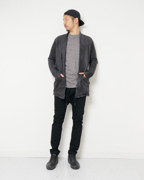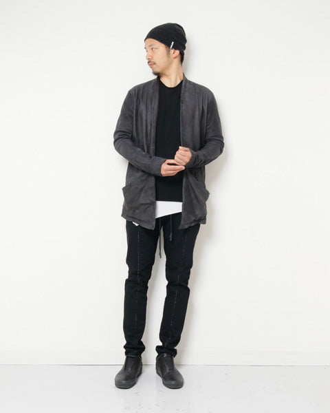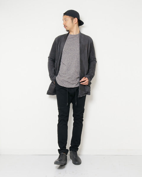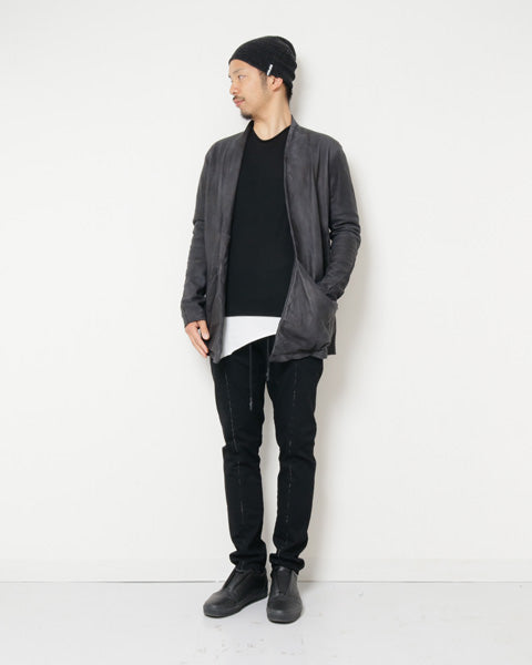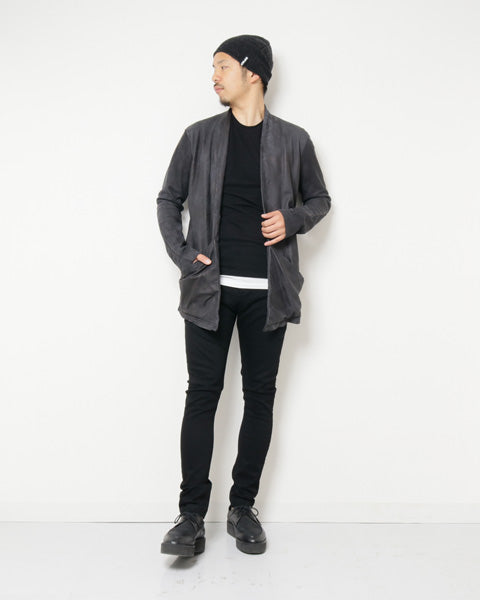 全体的にシャープなシルエットで、着丈をやや長めにし縦に落ち感を出したつくりです。