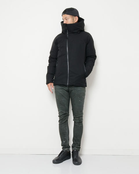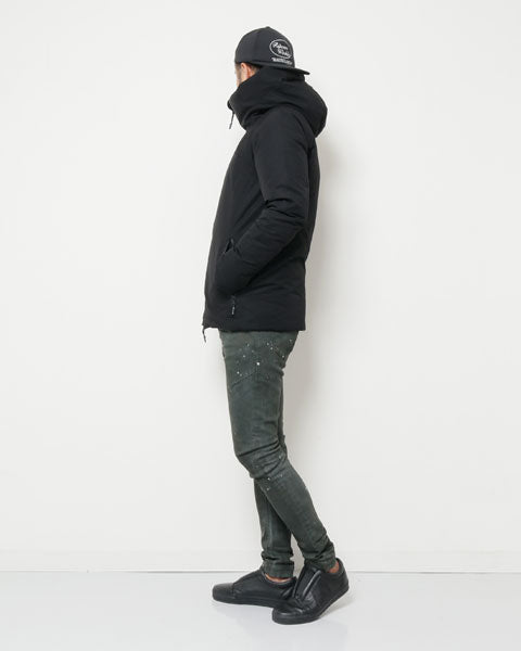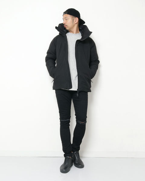 止水カーブファスナーでサムホールも装備したダウンジャケットです。