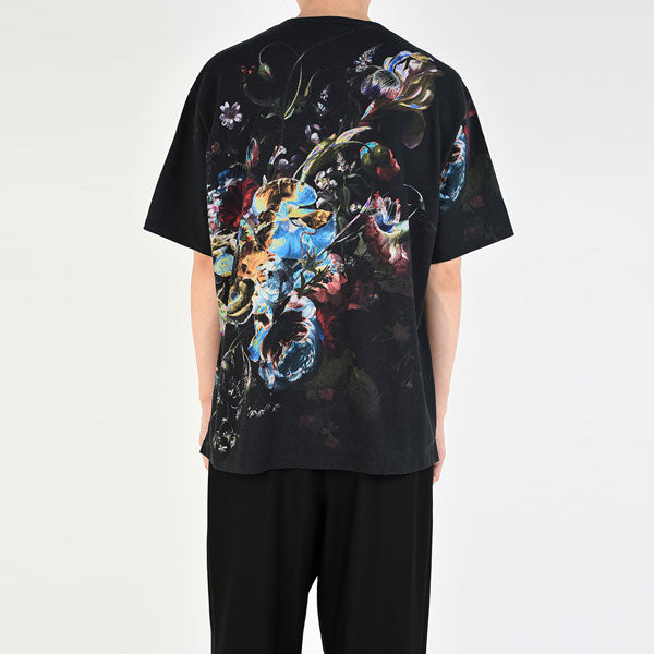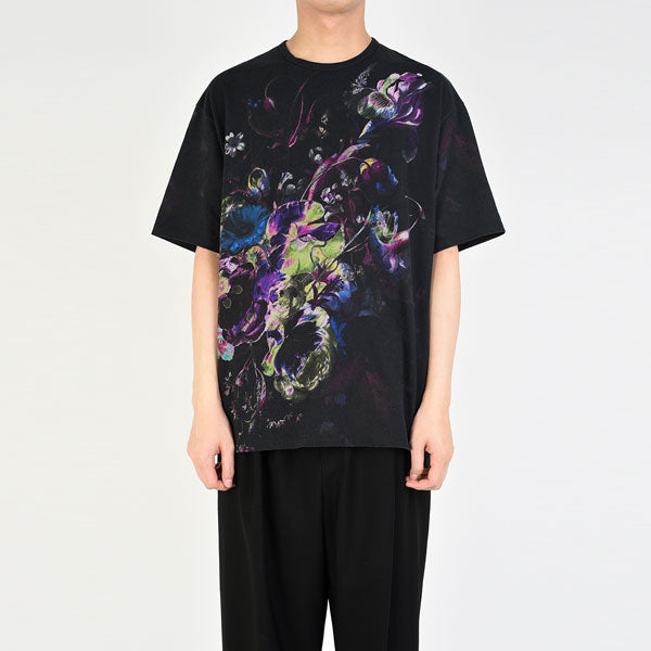フラワー柄をプリントした天竺素材を使用したビッグTシャツ。