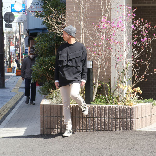 リブ編みのビーニーです。 綿の柔らかさと麻の清涼感が特徴で、独特な風合いが楽しめる春夏仕様のニットキャップ。 今回は折り返しのデザインで、杢調の風合いがスタイリングの良いアクセントになってくれます。