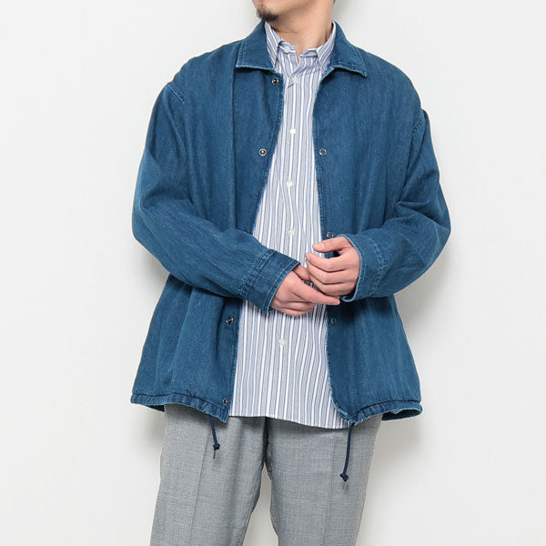 リネン混のデニムでかなりライトオンスのためシャツ感覚で羽織ることのできるアイテムです。