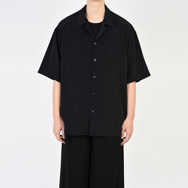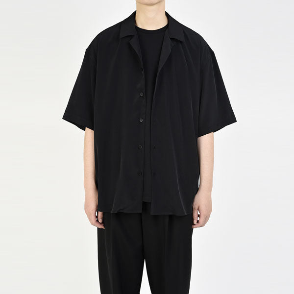 ドレープ性が強く柔らかいデシン素材を使用したオープンカラービッグシャツ。