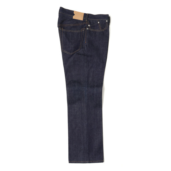 トルコ産のオーガニックコットンを使い糸の紡績から別注したオリジナルセルビッチデニムを使用しています。糊を落としていないリジット仕上げで、エイジングも楽しみな一本です。