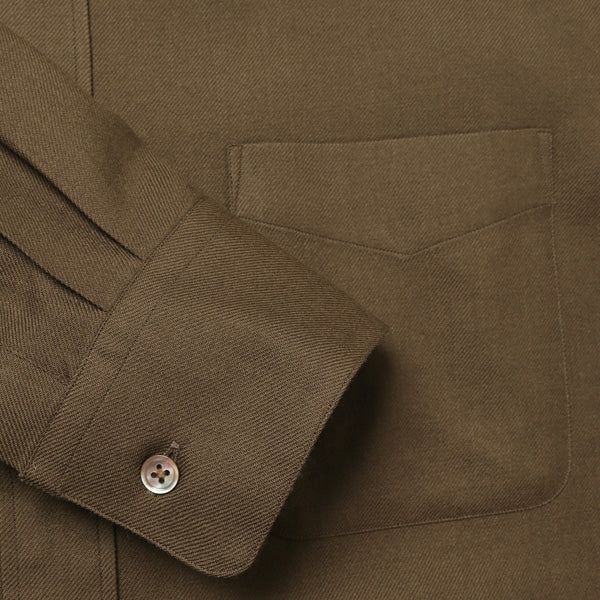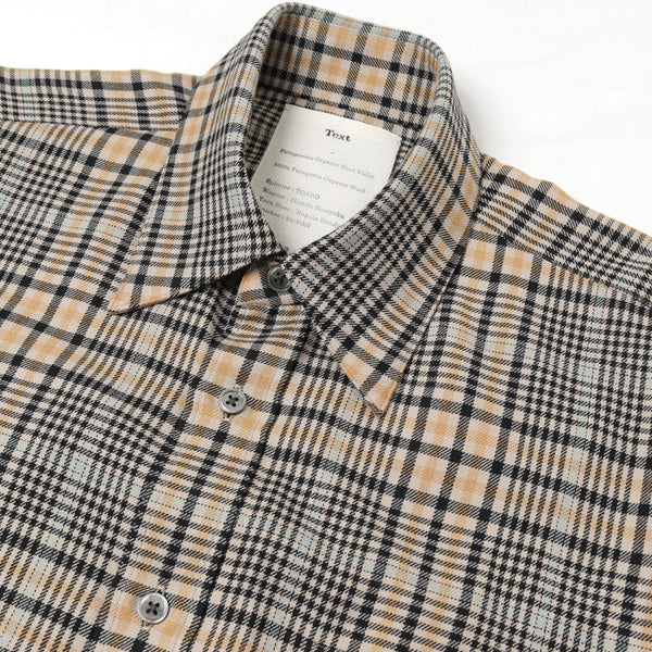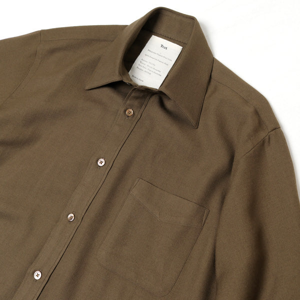 原アルゼンチンのパタゴニア地方で育てられたオーガニックウール100%のシャツ地です。ウールの弱点である縮みの問題は非塩素の防縮加工を施して軽減させています。17.5μmと細い原料を使っており、滑らかな肌触りが気持ちいい生地になりました。さらに、ウールならではの深い色合い、美しいドレープ感はコットンでは出せない魅力です。ウールがもつ天然の抗菌・防臭効果により汗臭くならないので旅行用にも最高。宮崎のオーガニック認証工場で紡績し、一宮のションヘル織機で織っています。