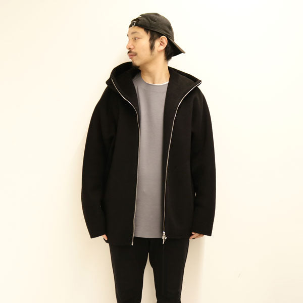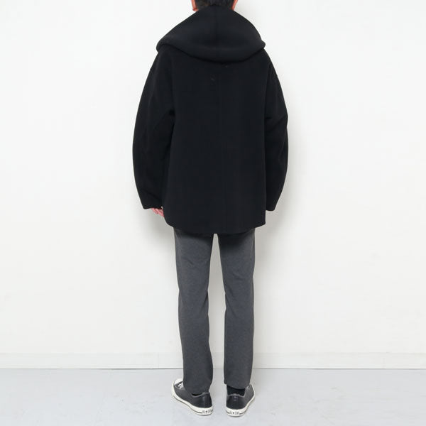 カシミヤ混ダブルフェイスビーバー フーデッドハーフコート