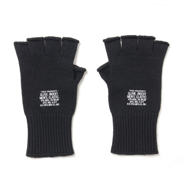 ・N.HOOLYWOOD TEST PRODUCT EXCHANGE SERVICEオリジナルのミルスペックとロゴをプリントした、指ぬきグローブ。