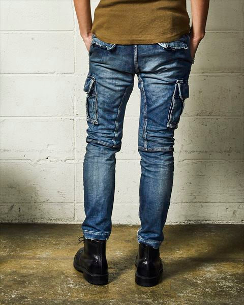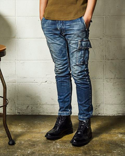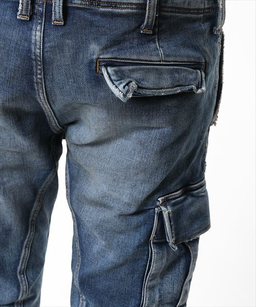 SWEATLIKE-STRETCH DENIM TAPERED CARGO PANTS