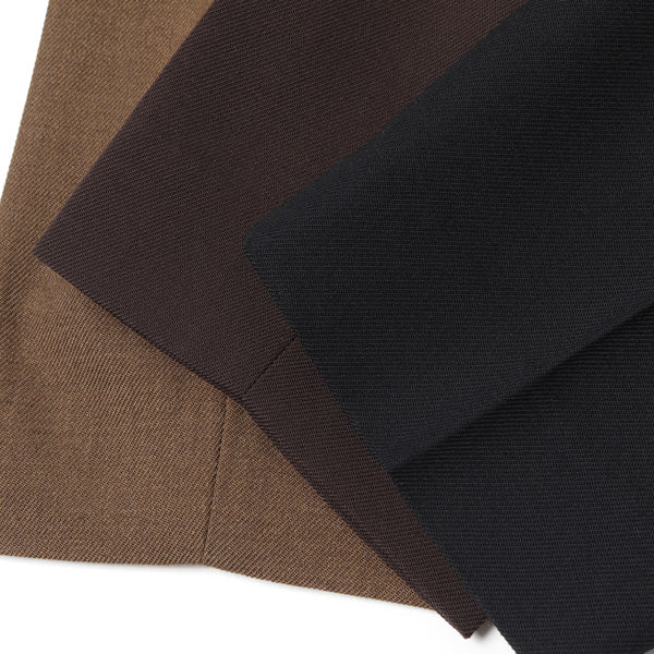 色はBLACKに、新色のDARK BROWN, KHAKIを加えた3色展開です。KHAKIは英国のミリタリーウェアを参考にトップ(原料)染めにより奥行きのある色合いに仕上げました。