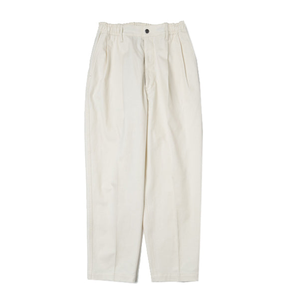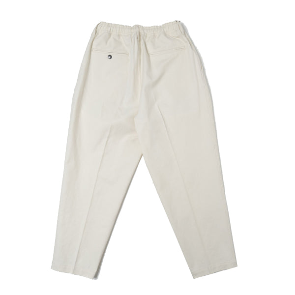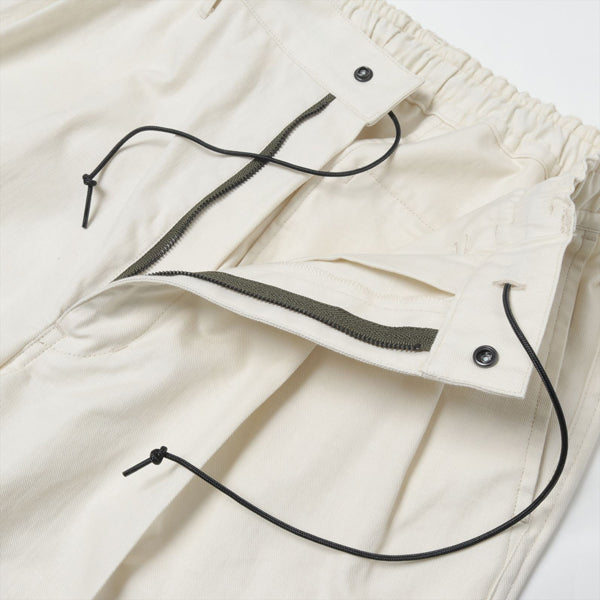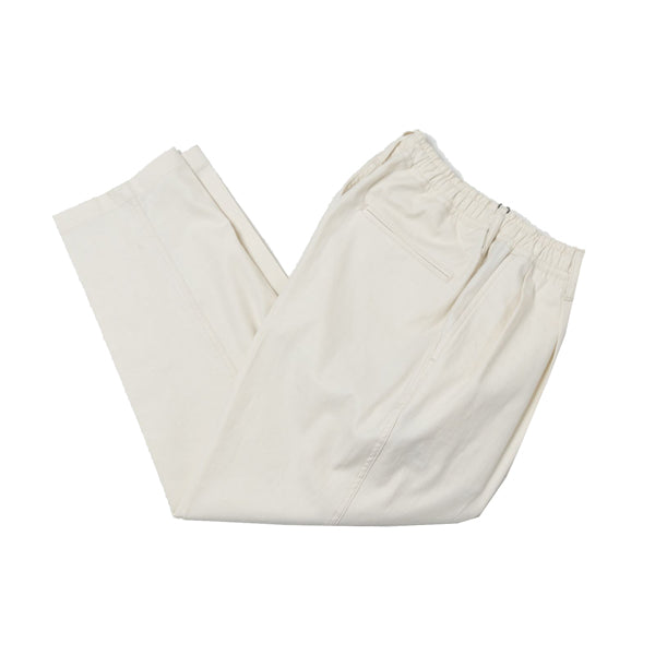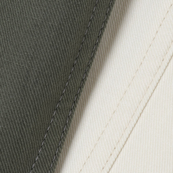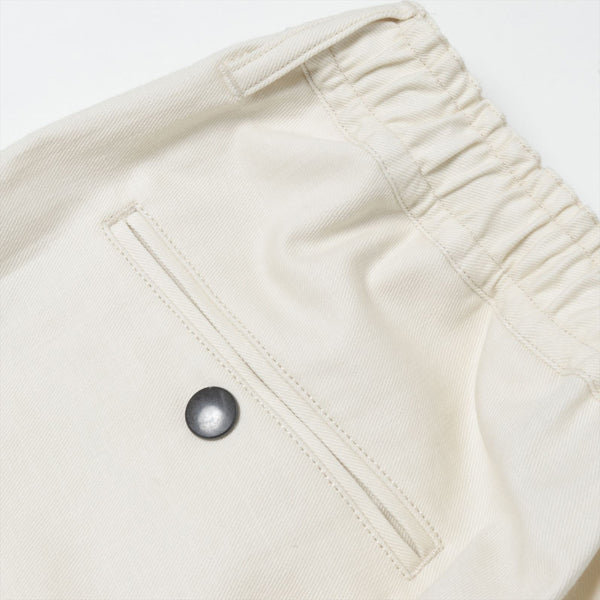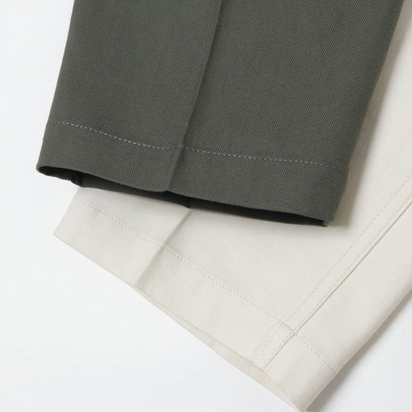 ・ドライタッチでナチュラルな素材感を持つオーガニックコットンのサージ素材を使用。アイボリー色は独自で染め上げたオリジナル。
