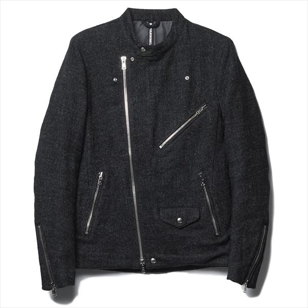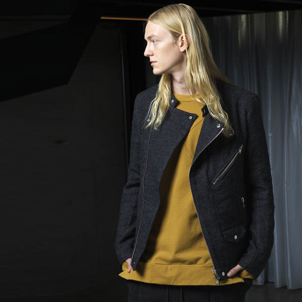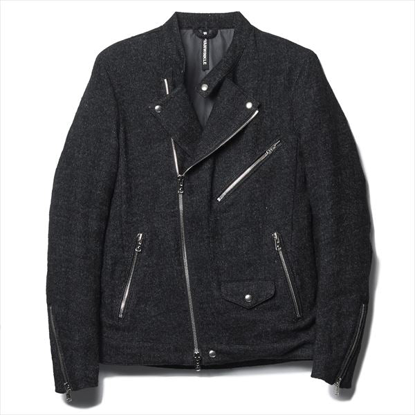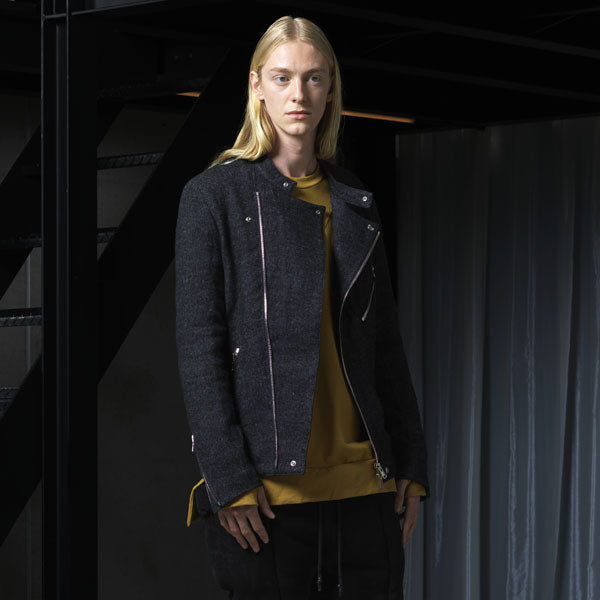 シェットランドウールリネンを使用したシングルダブル仕様のウールジャージライダース。