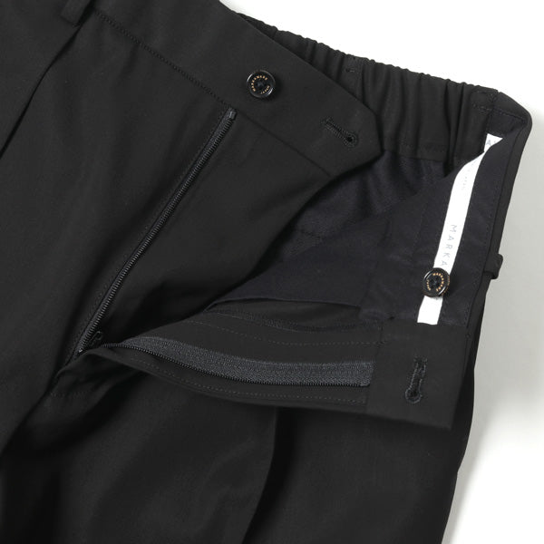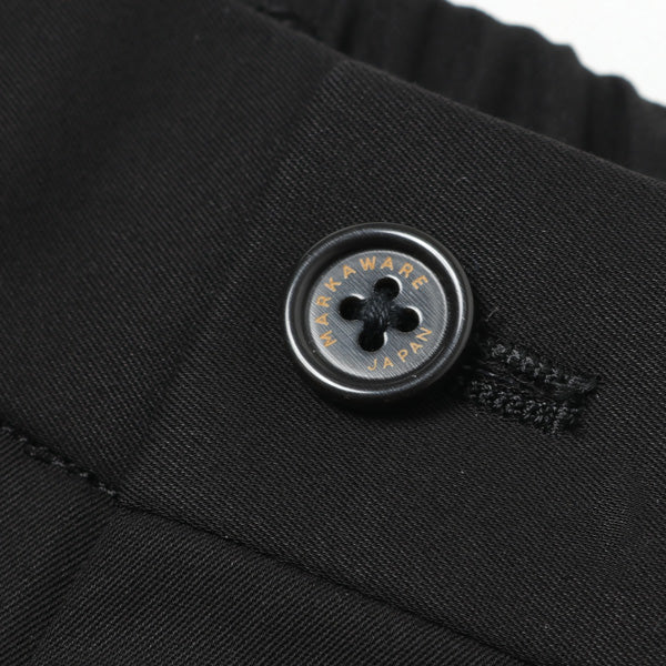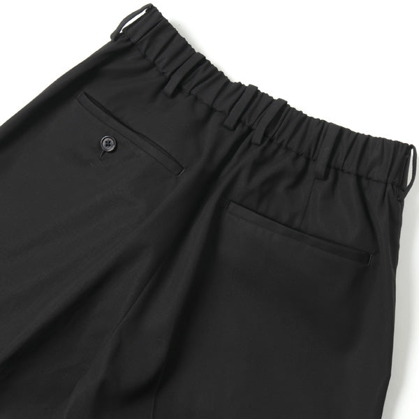 BLACK1色展開となります新素材の超強撚ギャバジンを使用したペグトップトラウザーです。