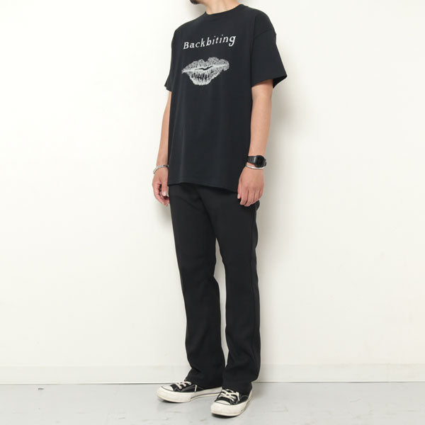 膝から裾にかけての緩やかなフレアーラインはセンタープレスと相まって、