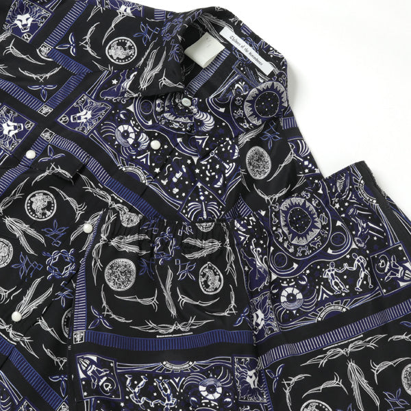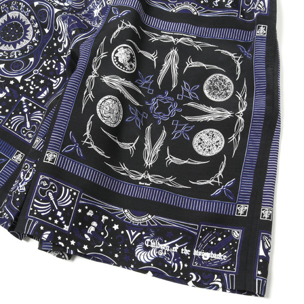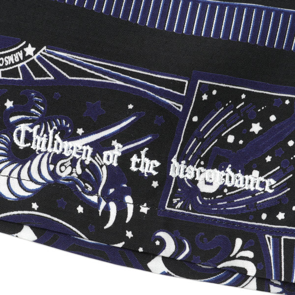 ・しなやかなドレープが高級感のあるレーヨン素材を使用。ARMS CLOTHING STORE 斎須氏が収集した12星座のヴンテージバンダナをコラージュした昨シーズンのデザインに、今回はChildren of the discordance 志鎌氏がデザインしたピンストライプバンダナを加えた貴重なテキスタイルです。