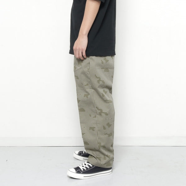 ・ウエスト後ろにゴムを内蔵し、スピンドルも追加することにより着心地の良いフィット感を追求。今回の・わたりにゆとりを持たせながら、裾にかけてテーパードを効かせたリラックスシルエット。