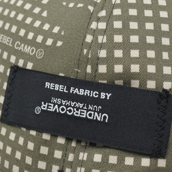 UNDERCOVER のアーカイヴから提供を受けたナイトカモフラージュ柄に、今回のために命名された“REBEL CAMO”を構成したテキスタイルパターンを製作。“REBEL FABRIC”のタグはUNDERCOVER デザイナー高橋 盾氏がN.HOOLYWOOD のために特別にデザイン。プリント後に洗い加工を施すことで当時の柔らかい風合いを再現したツイル地を使用。
