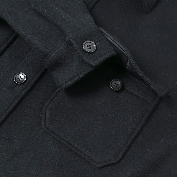 ・80’S のCPO シャツをベースにデザイン。胸のパッチポケットのほか、シームポケットを追加。N.HOOLYWOOD の刻印入りのオリジナルボタンを使用。左袖にはN.HOOLYWOOD COMPILE のブランドネームを配置。