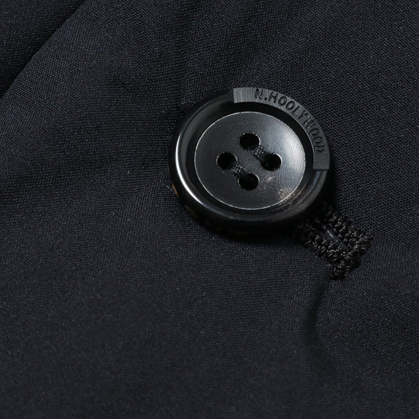 N.HOOLYWOOD のロゴを刻印したオリジナルの水牛ボタンを使用。またボタンの間隔を広く設定することでソリッドな印象に。袖口にはドットボタン、ウエストにはドローコードを内蔵。左袖にはN.HOOLYWOOD COMPILEのネームを配置。