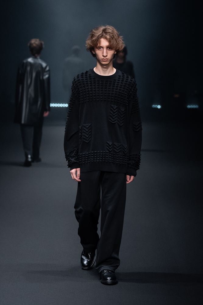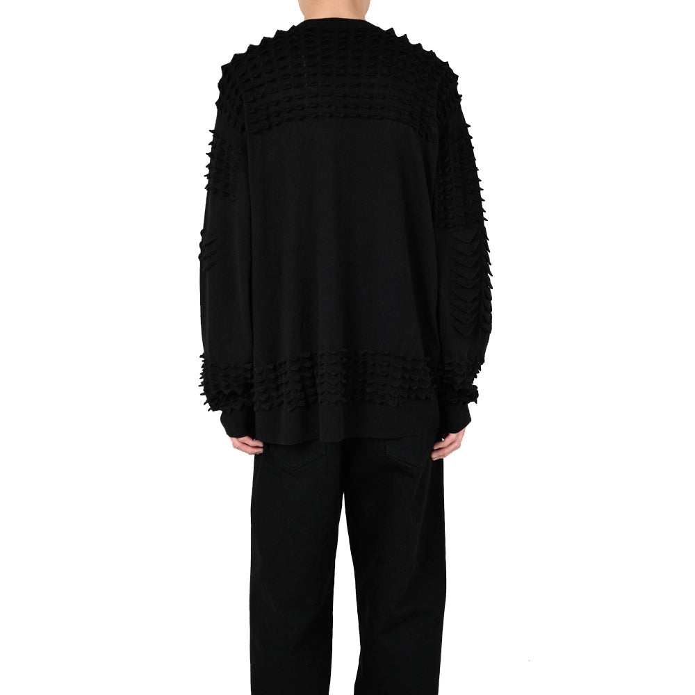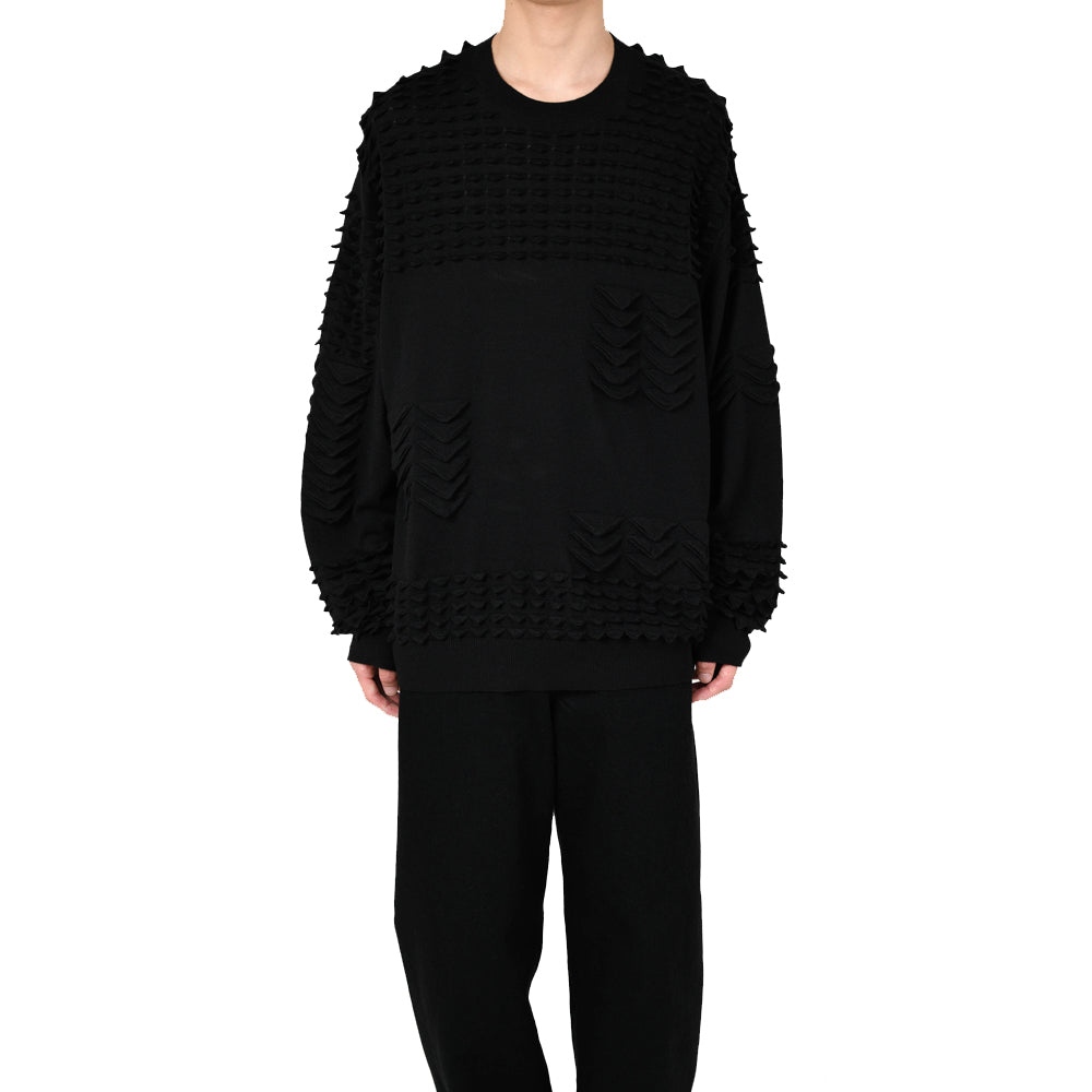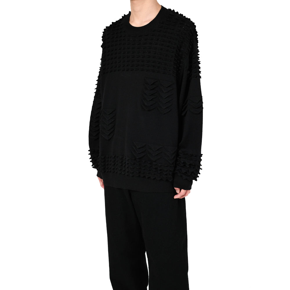 スタッズをモチーフにした柄を特殊な3D編み機で時間をかけて立体的に表現しています。