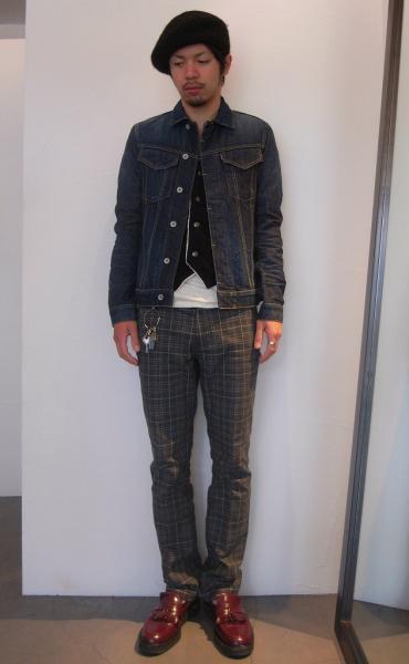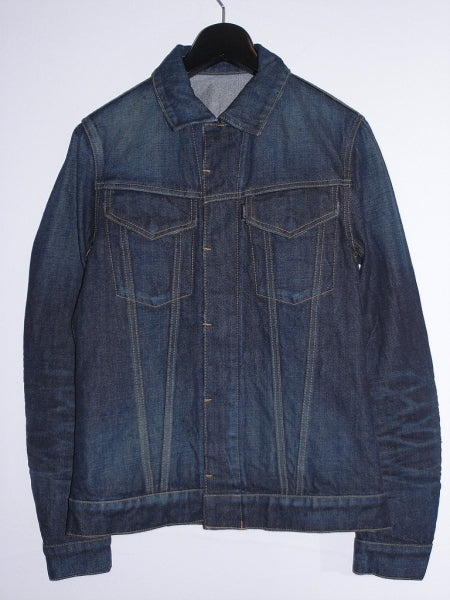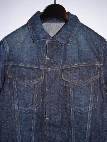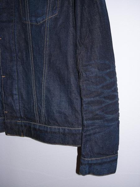 ヴィンテージインディゴデニムGジャンとなります。 濃い色目を残しつつ、シェービングなどを施し 程好いアタリを出しております。