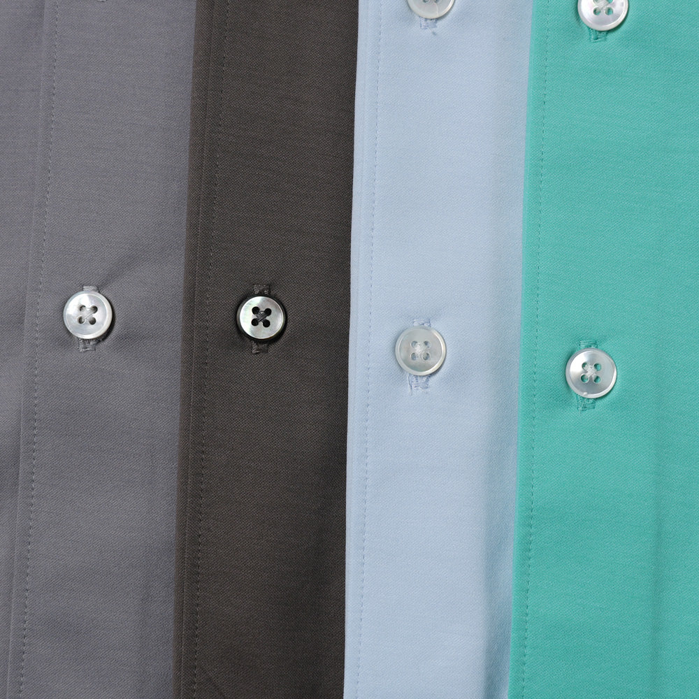 46Gという、スーパーハイゲージで、タイプライターという織物の高密度平織組織を実現。ストレッチ性が高く一度着ると止められない着心地、そして、着用時のしわなどの形態変化も少なく、イージーケア性も高い。 ハリ感、光沢感、イージーケアを持ち併せたカネマサにしかできないニュースタンダードシャツ地。