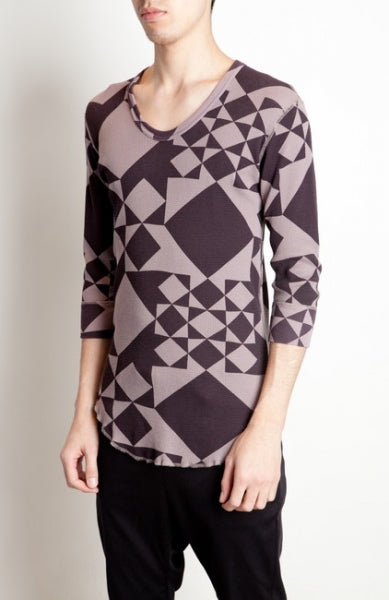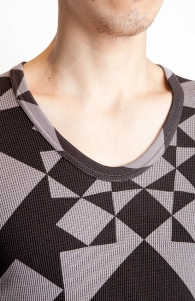オリジナルテキスタイルを薄手のワッフルにプリントしたカットソー。