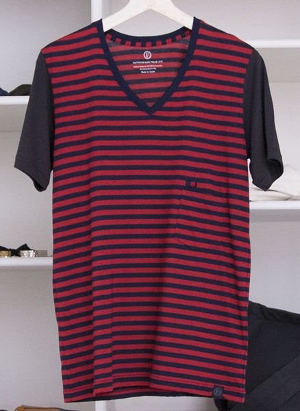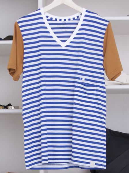 している先染め細ボーダーとなります。無地とのコンビネーションがポイントです。