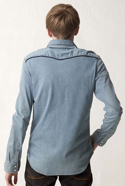 特有のドレープ感と色落ち感のあるモダールデニムを使用したウェスタンシャツ。