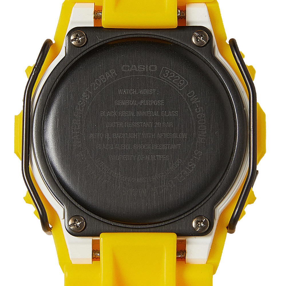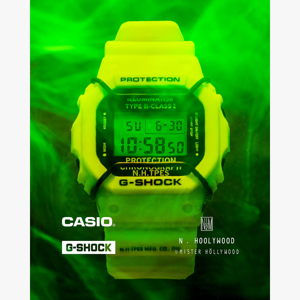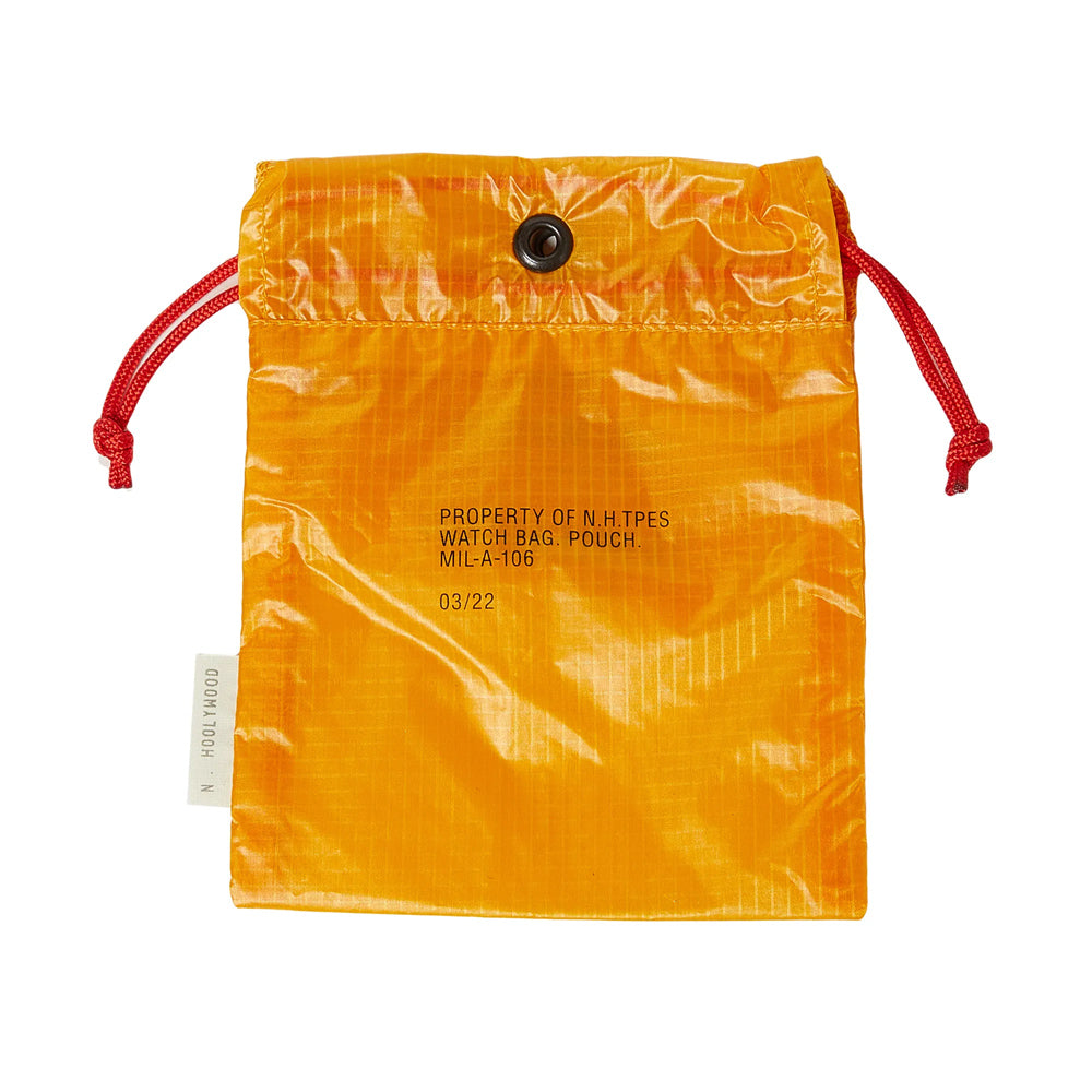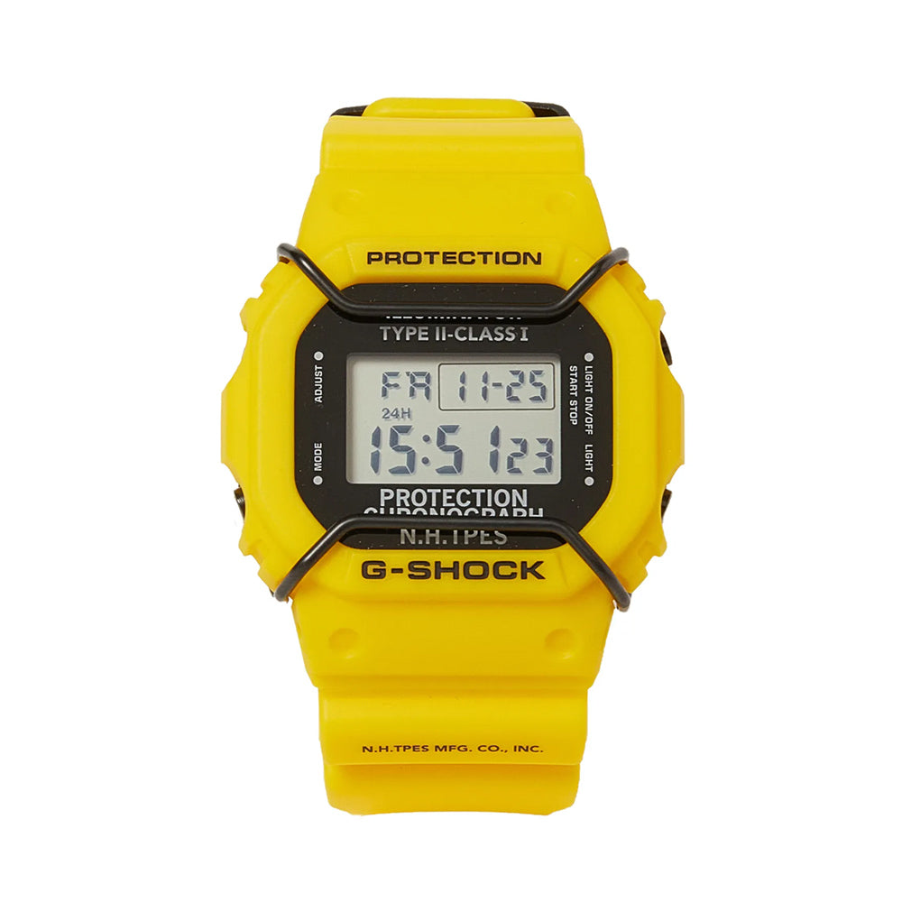 ・当時の”DW-5600”には付いていなかったプロテクターを装備し、よりタフな仕様に。マットなイエローとブラックのコントラストが美しい一本。フェイス上下、ベルト、ケース裏にはN.H.TPES のミルスペックを刻印。米軍の官給品を彷彿とさせる、オリジナルのパッケージを製作。また今季のデザインインスピレーションとなった米軍のSEA DYE MARKER をイメージしたポーチ付き。幅広いサイズ調節が可能なユニセックス仕様。