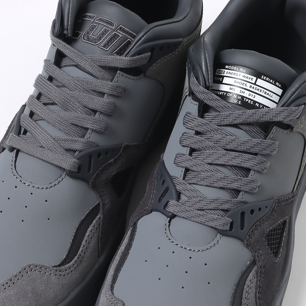 ・アッパーはヌバックとスウェードをメインに使用し、メッシュやリフレクターをミックス。左足のタンにオリジナルのミルスペック、右足のタンに CONS の刺繍ロゴをプラス。ミリタリーアイテムからのインスピレーションで CONS のロゴをヒール部分に移動し、型押しでオン。インソールには両ブランドのブランドロゴをプリント。CONVERSE 独自のミッドソールテクノロジーENERGY WAVE を搭載し、高弾圧の圧縮E.V.A.とポリウレタンの二層構造による抜群のクッショニングと快適な履き心地を実現。 シューレースは紐先に N.H.TPES のロゴ付き、コーディネートや気分によって変化を楽しめるようアッパーからセレクトした 2 色をセット。
