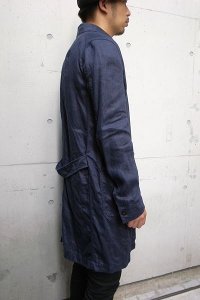 麻素材に製品洗い加工を施し、全体にあえて独特なシワ感を出しております。