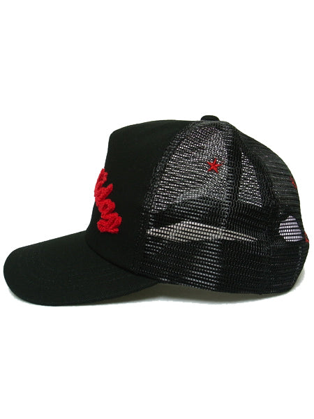 バックのメッシュ部分にもメッセージを刺繍しています。
