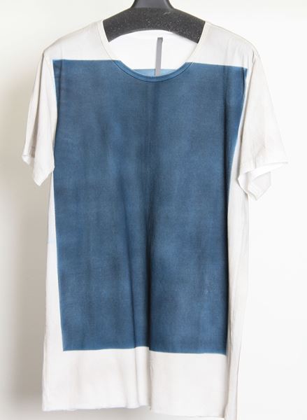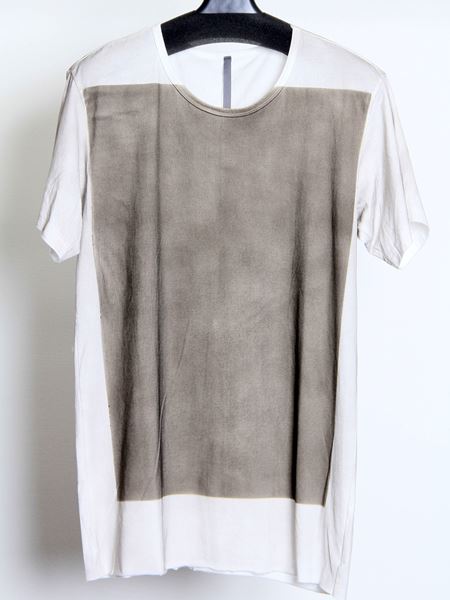 前身頃に大きく長方形を顔料プリントし、シンプルながらもインパクトのある