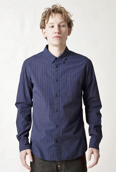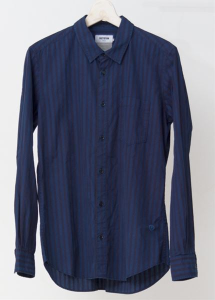 イタリアンストライプを製品染めでインディゴ染めしております。
