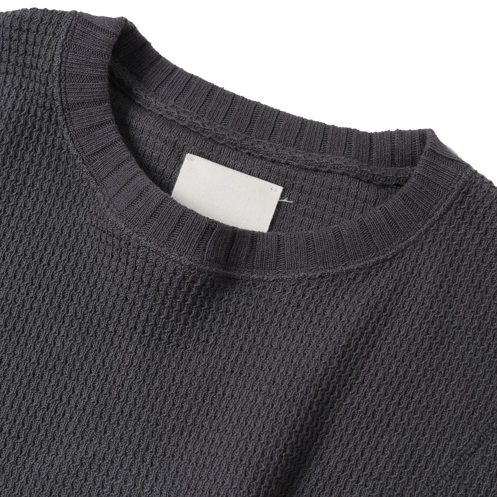 ローゲージワッフル素材になります。ムラ感のある表面感が特徴です。