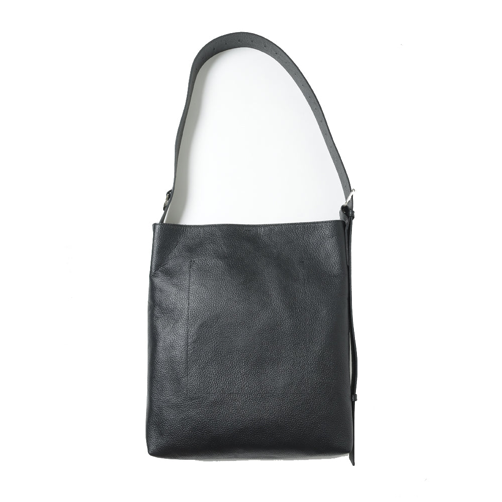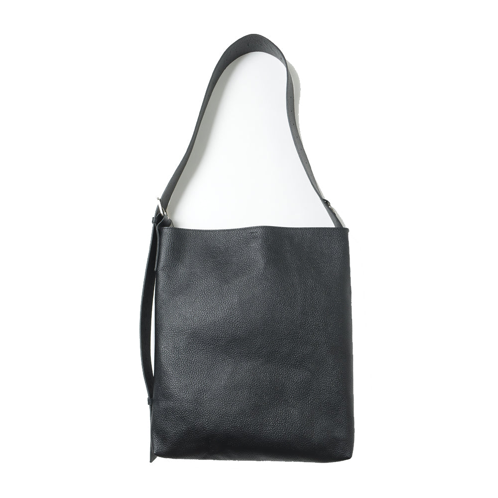 COLOR / BLACK x GOLDSIZE / FREE高級感のあるシボレザーをを使用したショルダーバッグ。ショルダー部分は長さ調整可能。