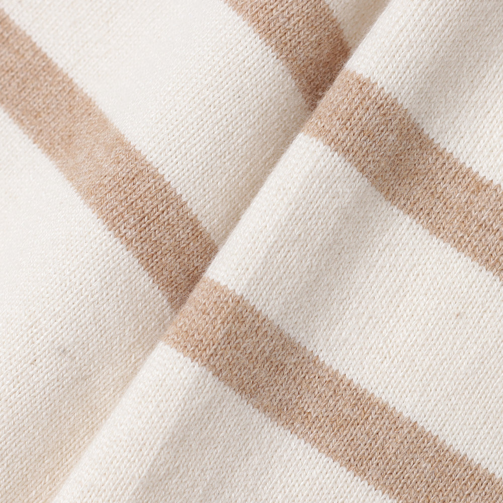 大人のための高級感のあるボーダーTシャツでカラダをすっぽりと覆い隠すサイズ感。