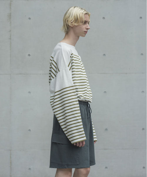 透け感の無いしっかりめのカットソー生地が普段のコーディネートに目新しさをもたらし、カーゴタイプで適度なボリュームとアクセントがあるため、物足りなさもありません。