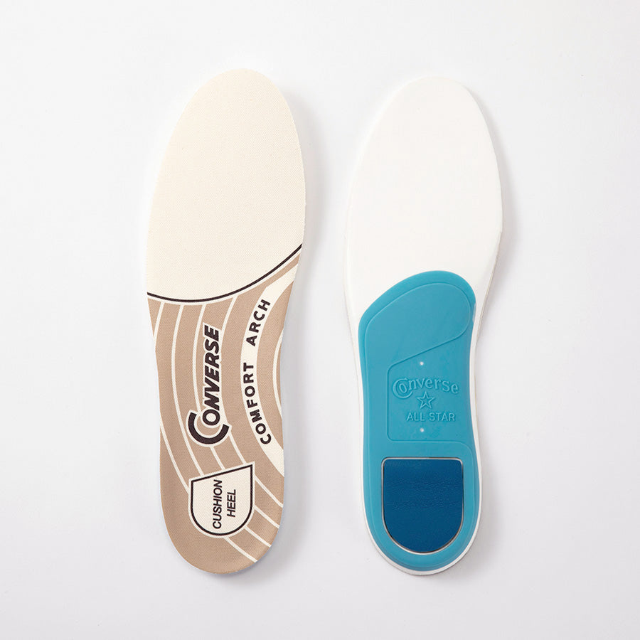 (7)クッション性に優れたE.V.A.と、安定した歩行をサポートするTPUシャンクを組み合わせた取り外し可能なカップインソール。ヒール部分には「PORON®」を搭載。