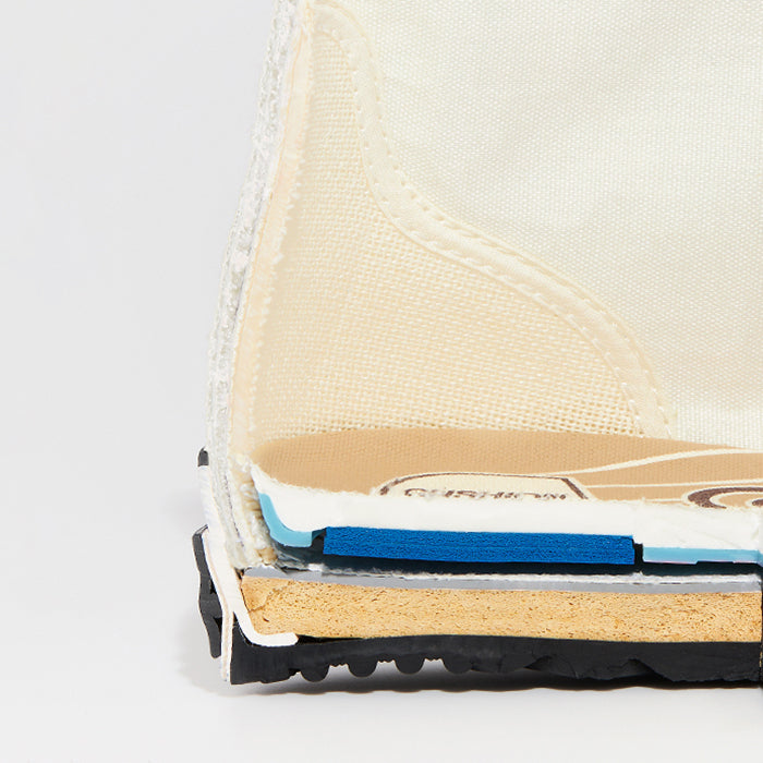 (5)アッパー補強:1960年代の「ALL STAR」に見られる、当て布とアーチ状のステッチによる両サイドの補強を再現。