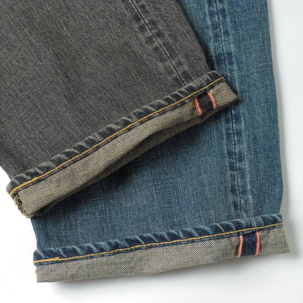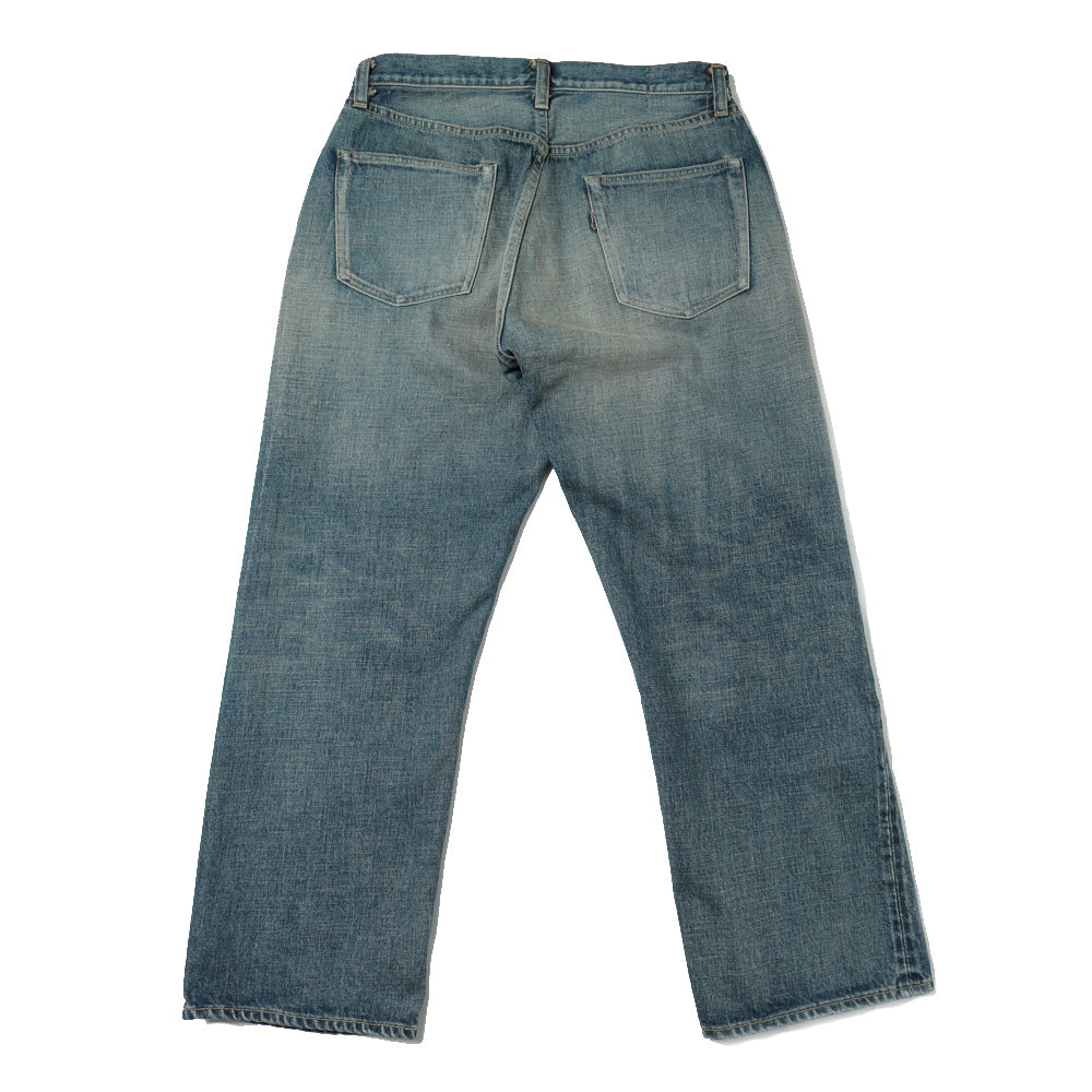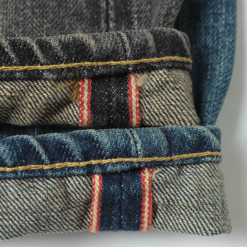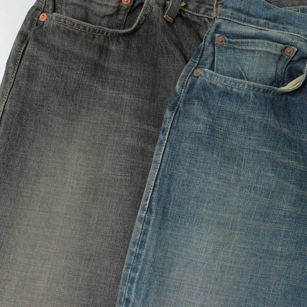 国内⽼舗機屋によるハードな質感の14ozヘビーウェイト セルビッチデニム。クオリティを維持できる最⼤の密度で 緯⽷を打ち込んだ⽣地です。CLASSIC VINTAGEは40年代〜50年のXXの中でも特にグッドバランスな個体の雰囲気・⾊落ち等を再現し、削りやブリーチ、オーバーダイなどを施しました。⻑年にわたって着込み、⼗分に経年変化した質感を表現するため、あえてボタンにも加⼯を施しています。