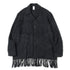 フリンジのディテールを裾に施したオープンカラーシャツ。