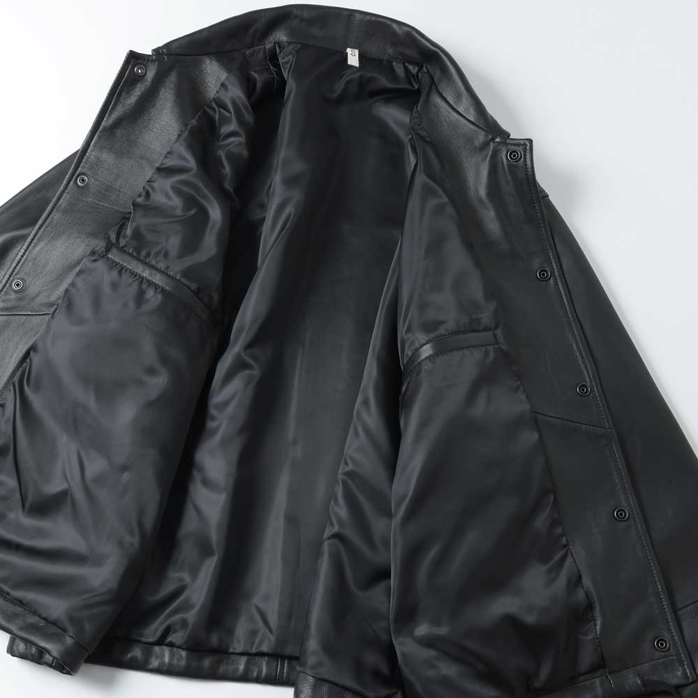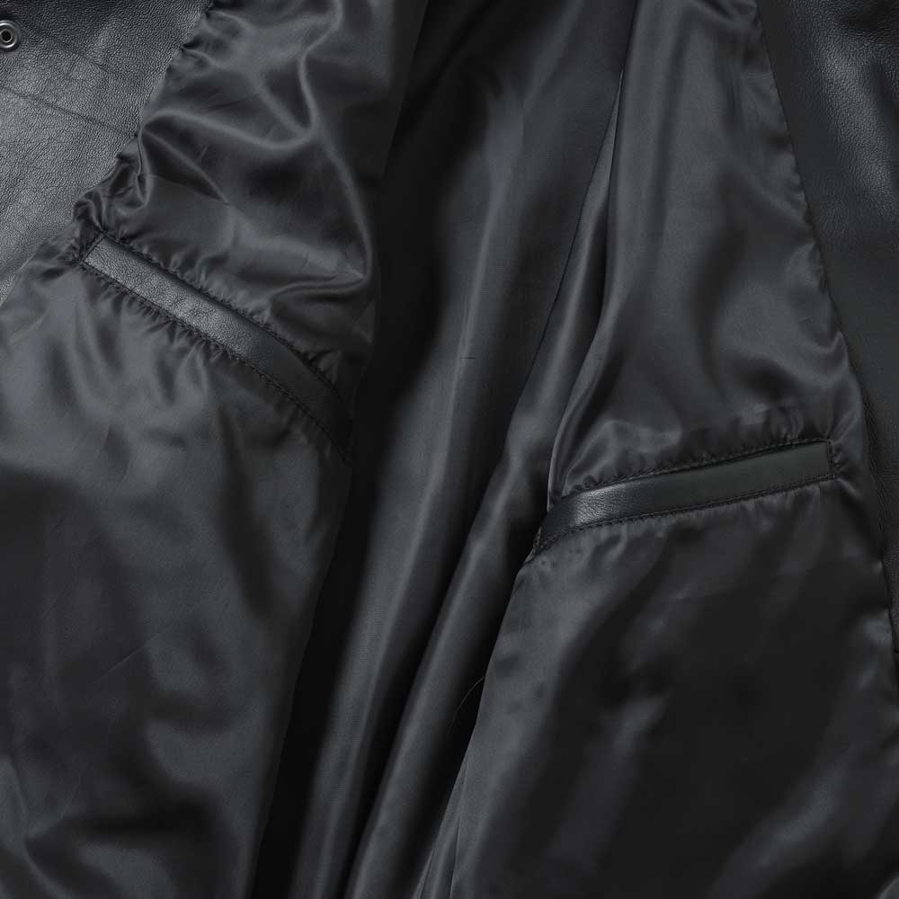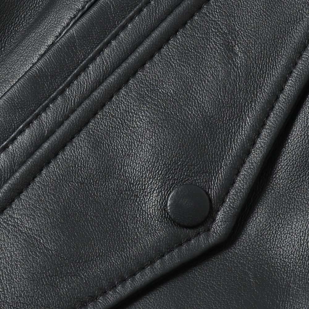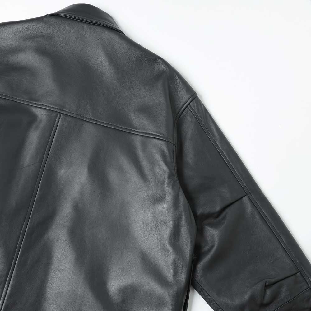 イギリス製シープレザーを使用。レザーの表面にはナッパラン加工を施しています。この加工により、マットな質感が生まれ、モダンで都会的な雰囲気を演出。ナッパラン加工は、レザーの光沢感を抑え、素材本来の風合いを引き立てる効果もあります。