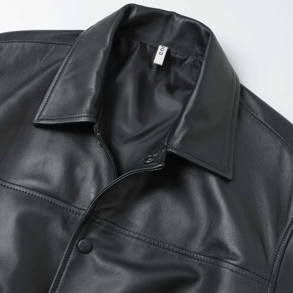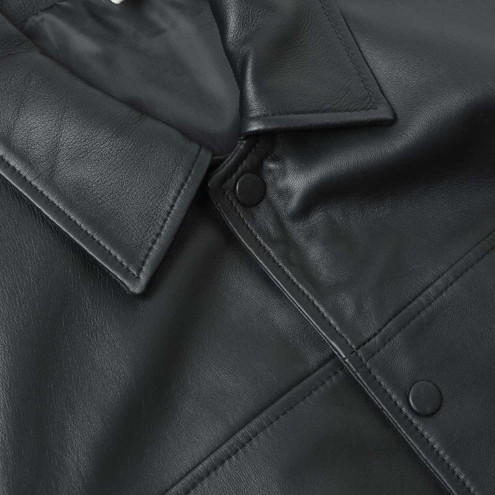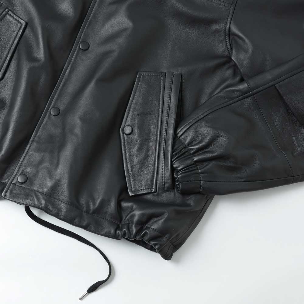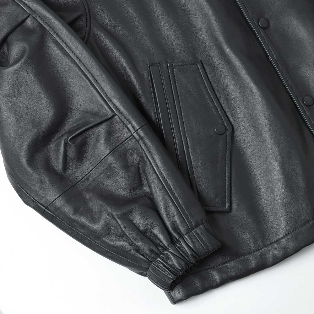 イギリス製シープレザーを使用。レザーの表面にはナッパラン加工を施しています。この加工により、マットな質感が生まれ、モダンで都会的な雰囲気を演出。ナッパラン加工は、レザーの光沢感を抑え、素材本来の風合いを引き立てる効果もあります。