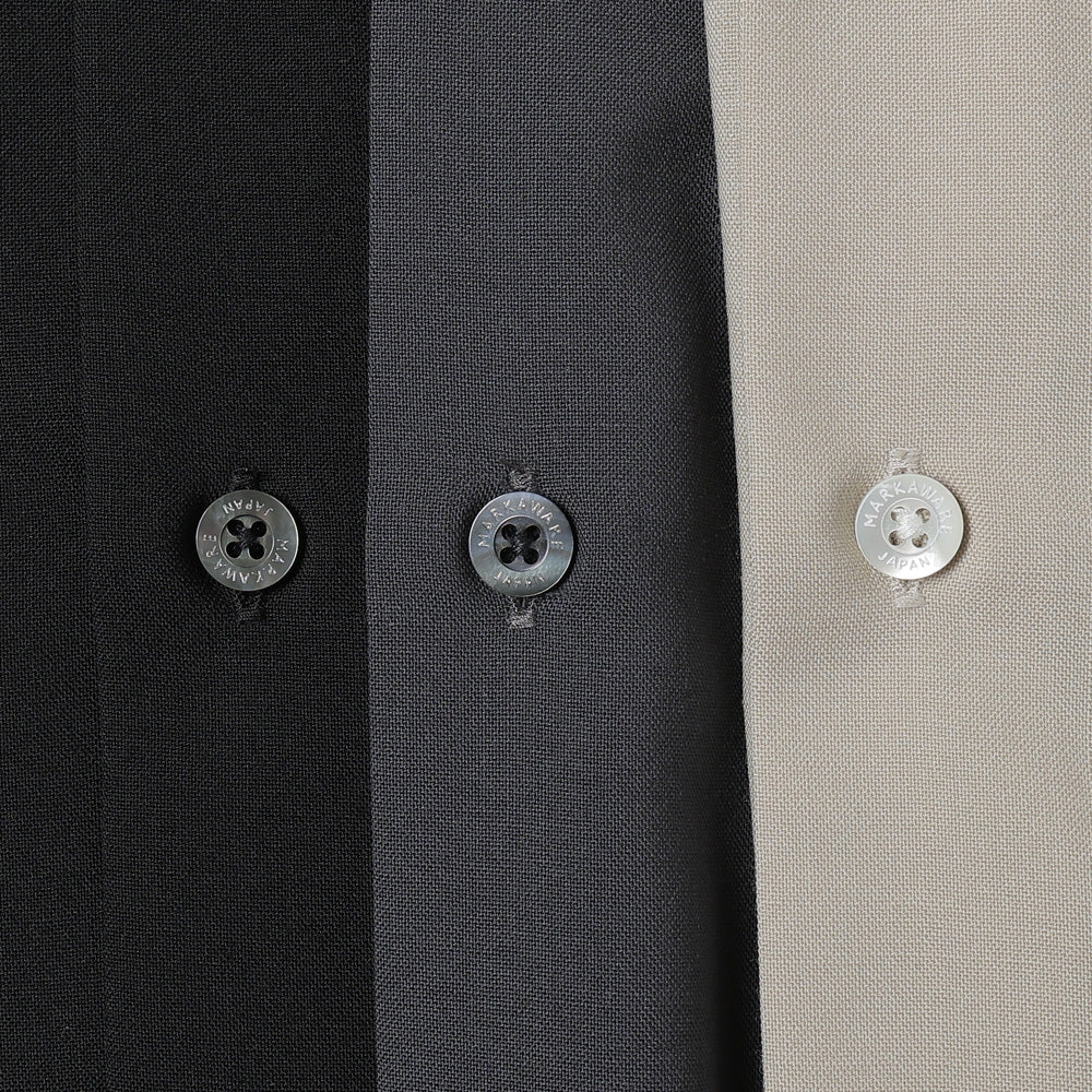 80/2のオーガニックウールトロピカル素材を使用。真夏でも快適に着用できる生地感となっております。デザインは定番として作り続けているコンフォートフィットシャツ。 程好くリラックスした雰囲気のシャツを是非お楽しみください。同素材でトラウザーの展開がありセットアップが可能です。