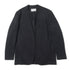 モクロディー素材のノーカラーデザインのジャケットライクなカーディガン。
