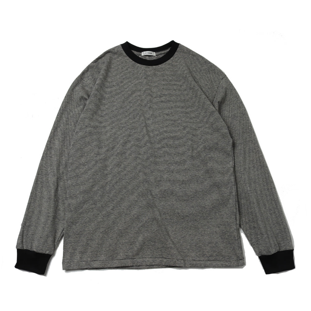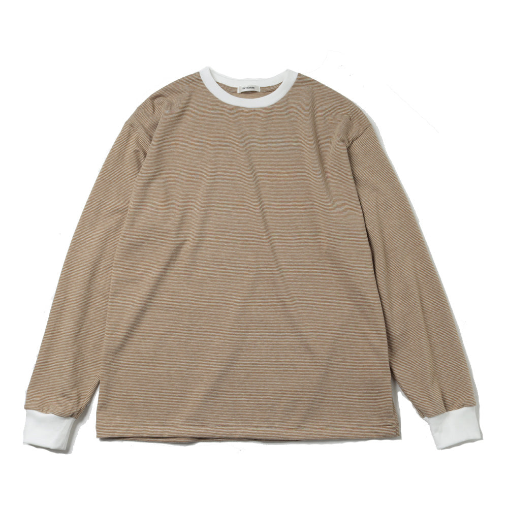ヘインズの80年代「BEEFY-T」の中でも、“⻘タグ”と呼ばれるTシャツをベースにした⻑袖カットソー。襟リブを細く設定し、すっきりとした印象に仕上げています。国内のメリヤス専業⼯場で縫製し、裾には熟練の職⼈の⼿を必要とする天地引き、ネックまわりには強度の⾼いタコバインダー仕様を採⽤しています。