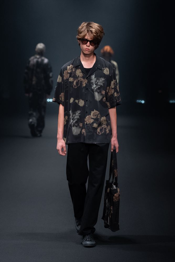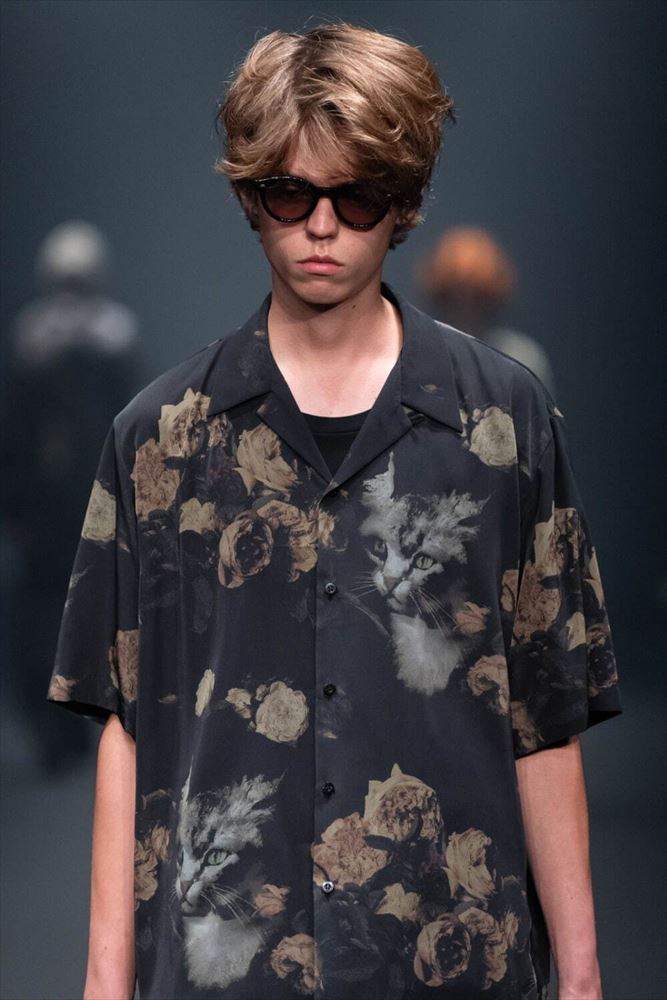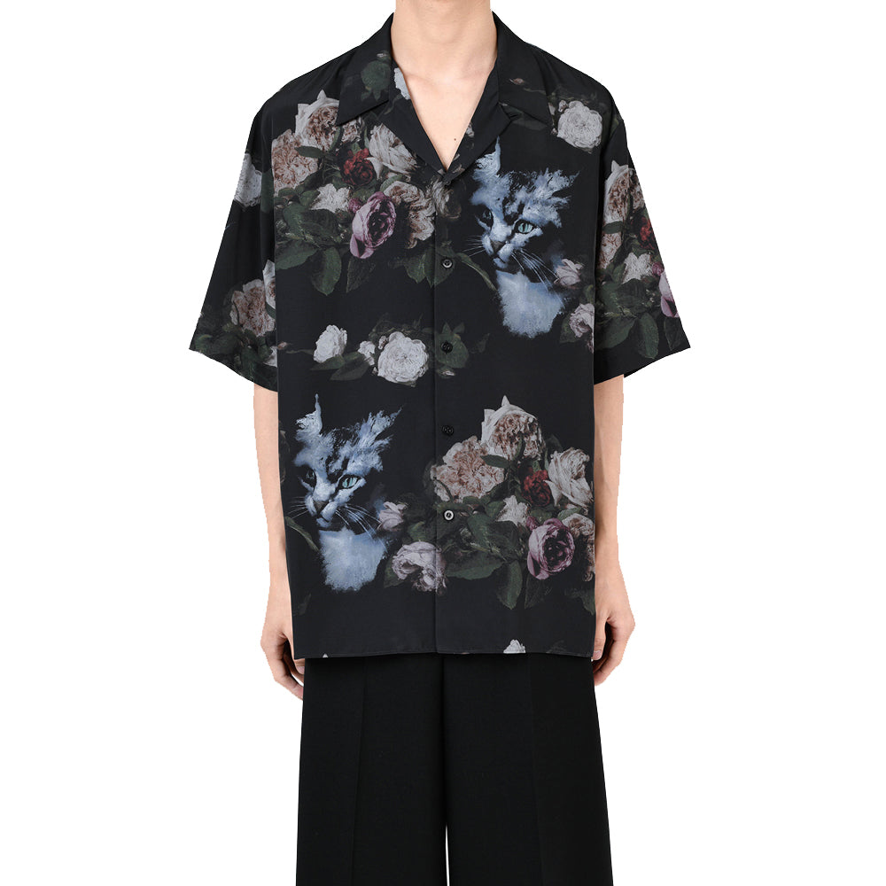 DECHINE OPEN COLLAR S/S SHIRT INKJET (PAINT ROSE & CAT)