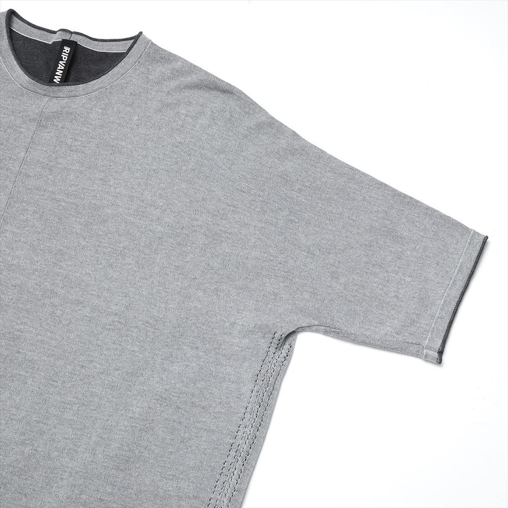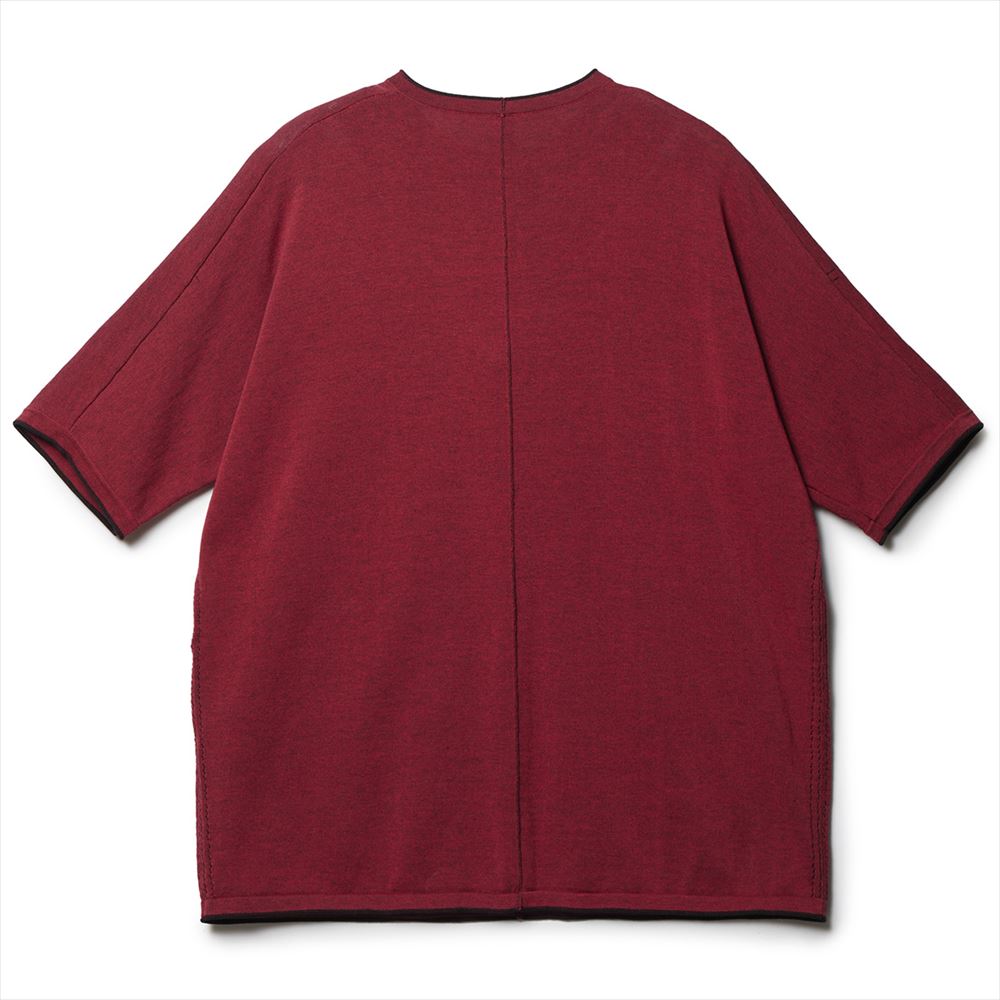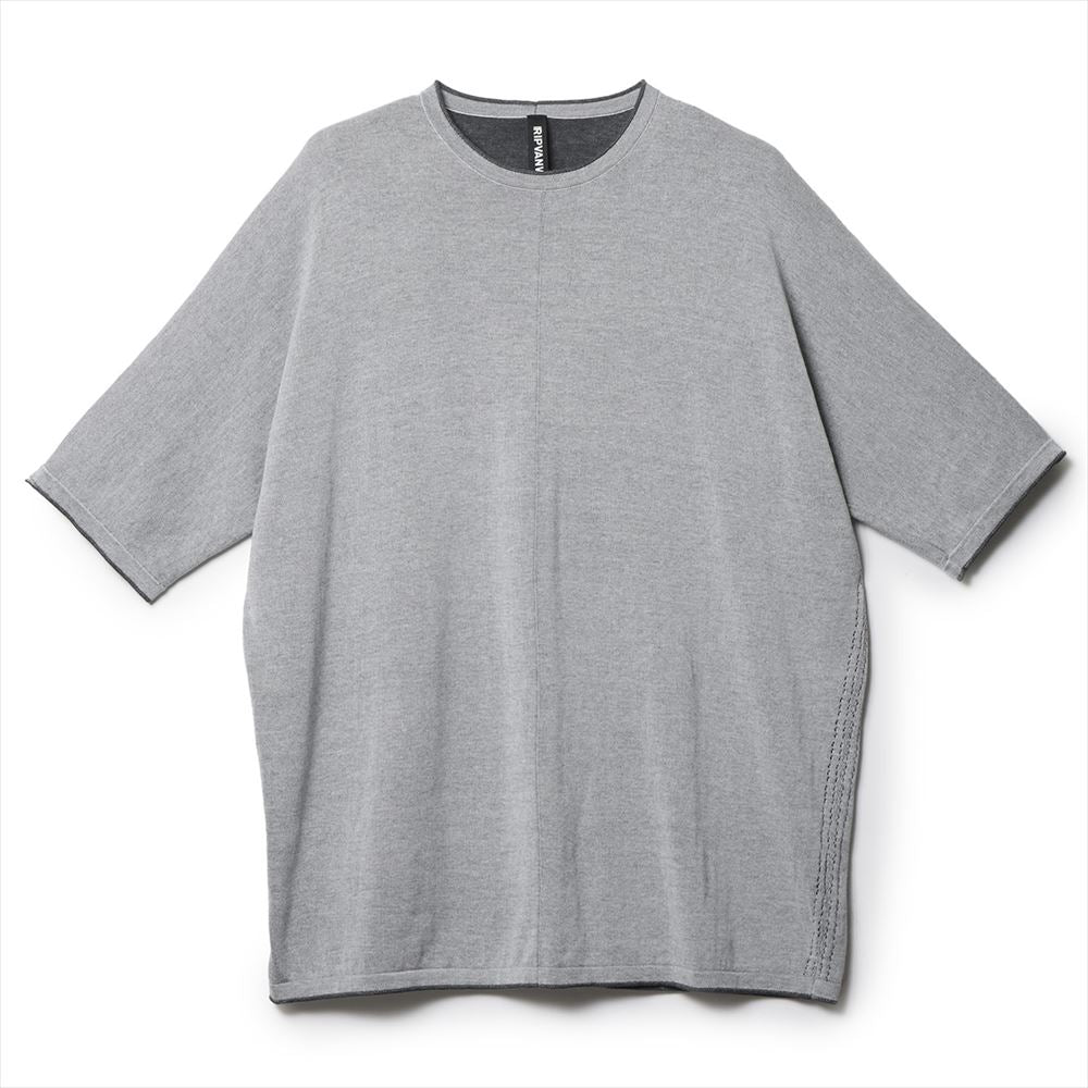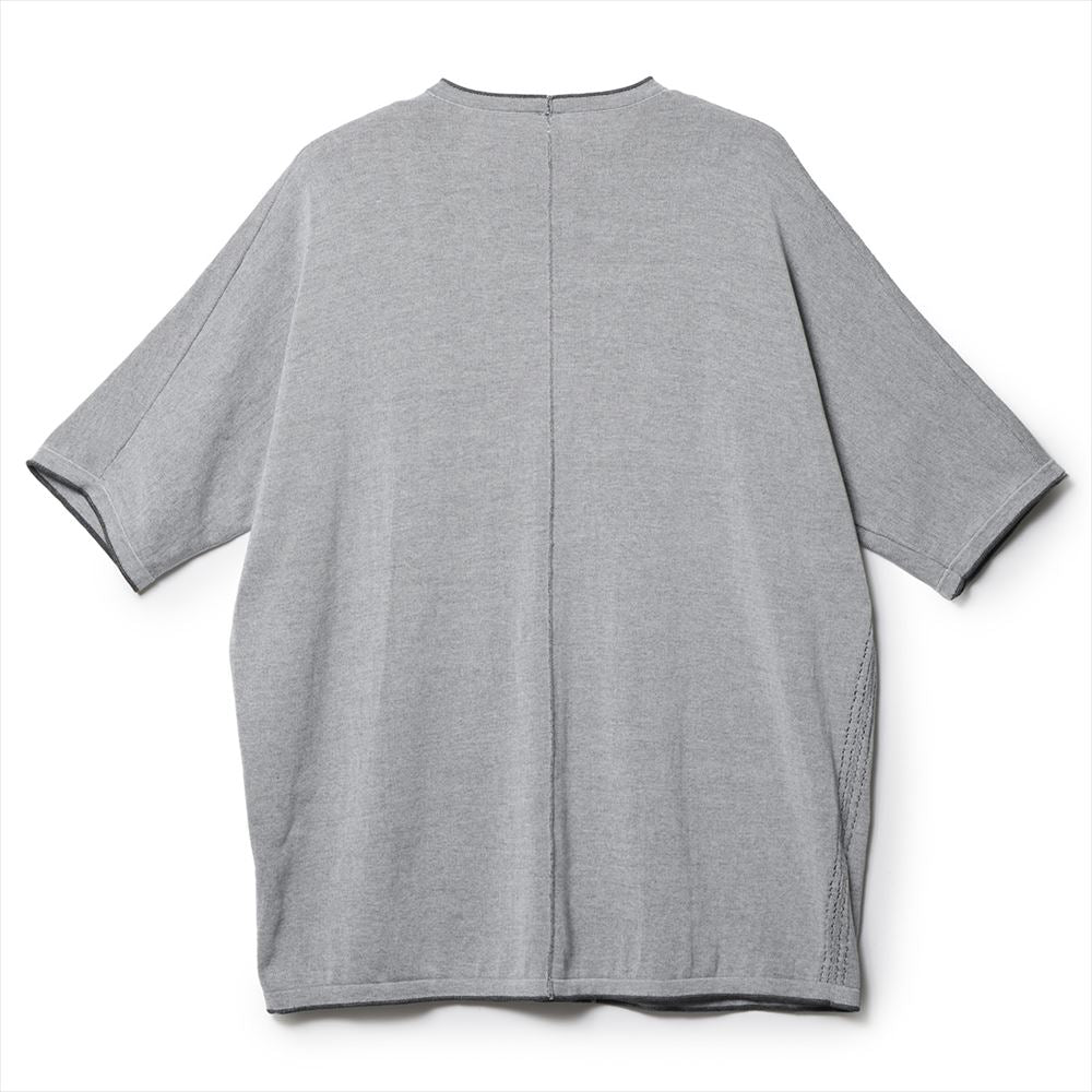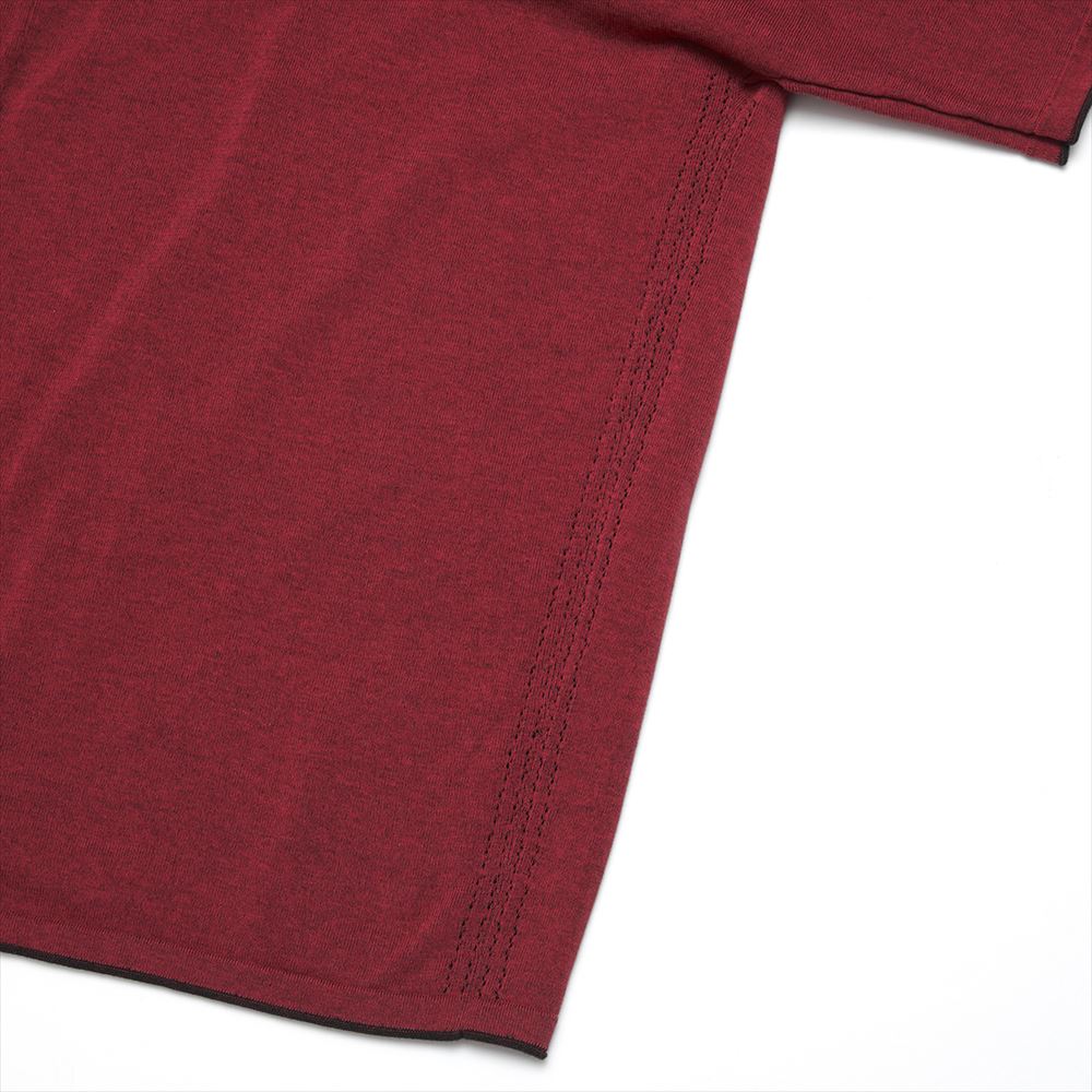強撚の強度を高めた強撚糸を使用する事により、吸湿性と速乾性に優れており、毛羽立ちが少なくドライなタッチ感が特徴。表と裏の糸色を配色で切り替えた、プレーティング天竺編み。また、今回は、表と裏の糸番手が異なるブレンド編みによって、更に軽い仕上がりで快適な着心地が実現。